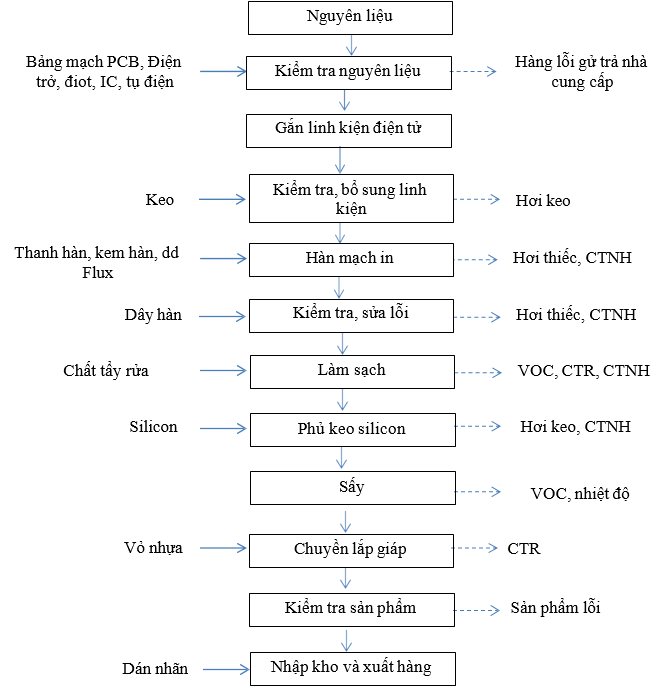 *Sơ đồ quy trình sản xuất gia công, lắp ráp bộ nguồn cung cấp điện cho đèn, thiết bị chiếu sáng được trình bày dưới đây: