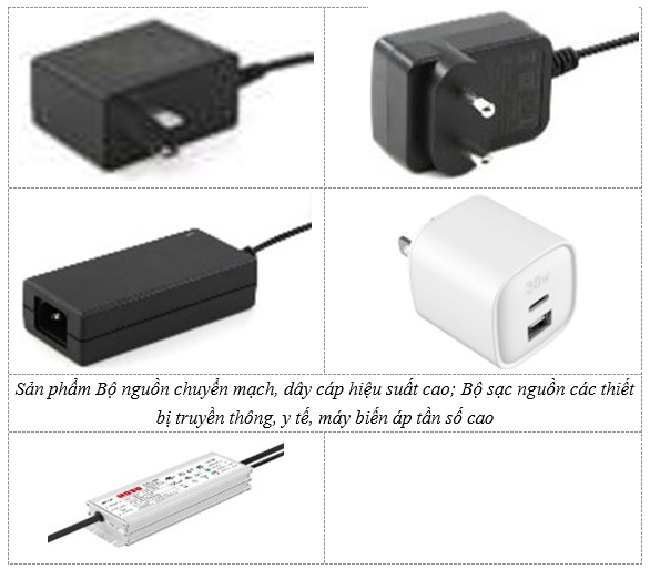 1.3.2.1.Quy trình sản xuất, gia công, lắp ráp Bộ nguồn chuyển mạch, dây cáp hiệu suất cao; Bộ sạc nguồn các thiết bị truyền thông, y tế, máy biến áp tần số cao