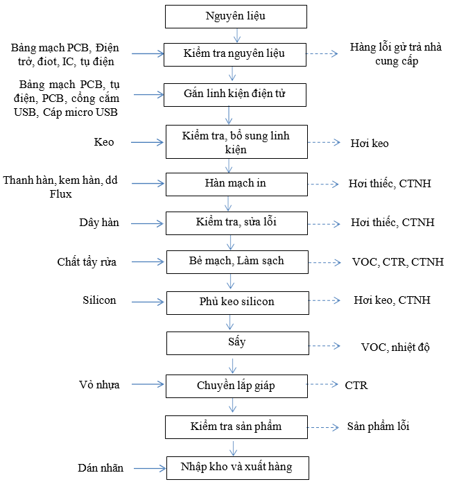 Hình 1.1. Quy trình sản xuất, gia công, lắp ráp Bộ nguồn chuyển mạch, dây cáp hiệu suất cao; Bộ sạc nguồn các thiết bị truyền thông, y tế, máy biến áp tần số cao