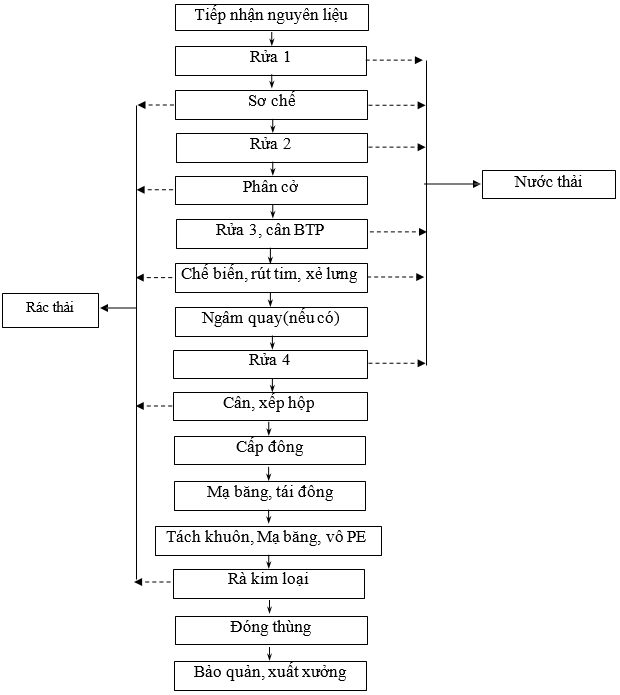 Báo cáo đề xuất cấp giấy phép môi trường (GPMT) nhà máy chế biến thực phẩm thủy sản với công suất là 3.900 tấn/năm. Sản phẩm của Công ty là tôm đông nguyên con, tôm nobashi, tôm vỏ, tôm IQF và tôm đông Block.