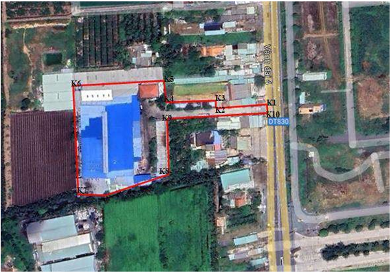 Cơ sở được xây dựng trên diện tích đất 10.830m2 , tại khu đất này chủ đầu tư đã được Sở Tài nguyên và Môi trường tỉnh Long An cấp Giấy chứng nhận Quyền sử dụng đất số B0 614303 ngày 20/03/2014. Các hạng mục xây dựng bao gồm: