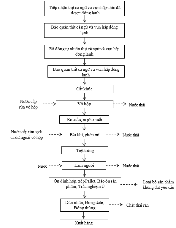 Công ty chỉ sản suất cá ngừ ngâm dầu đóng hộp với quy trình công nghệ sản xuất như sau: